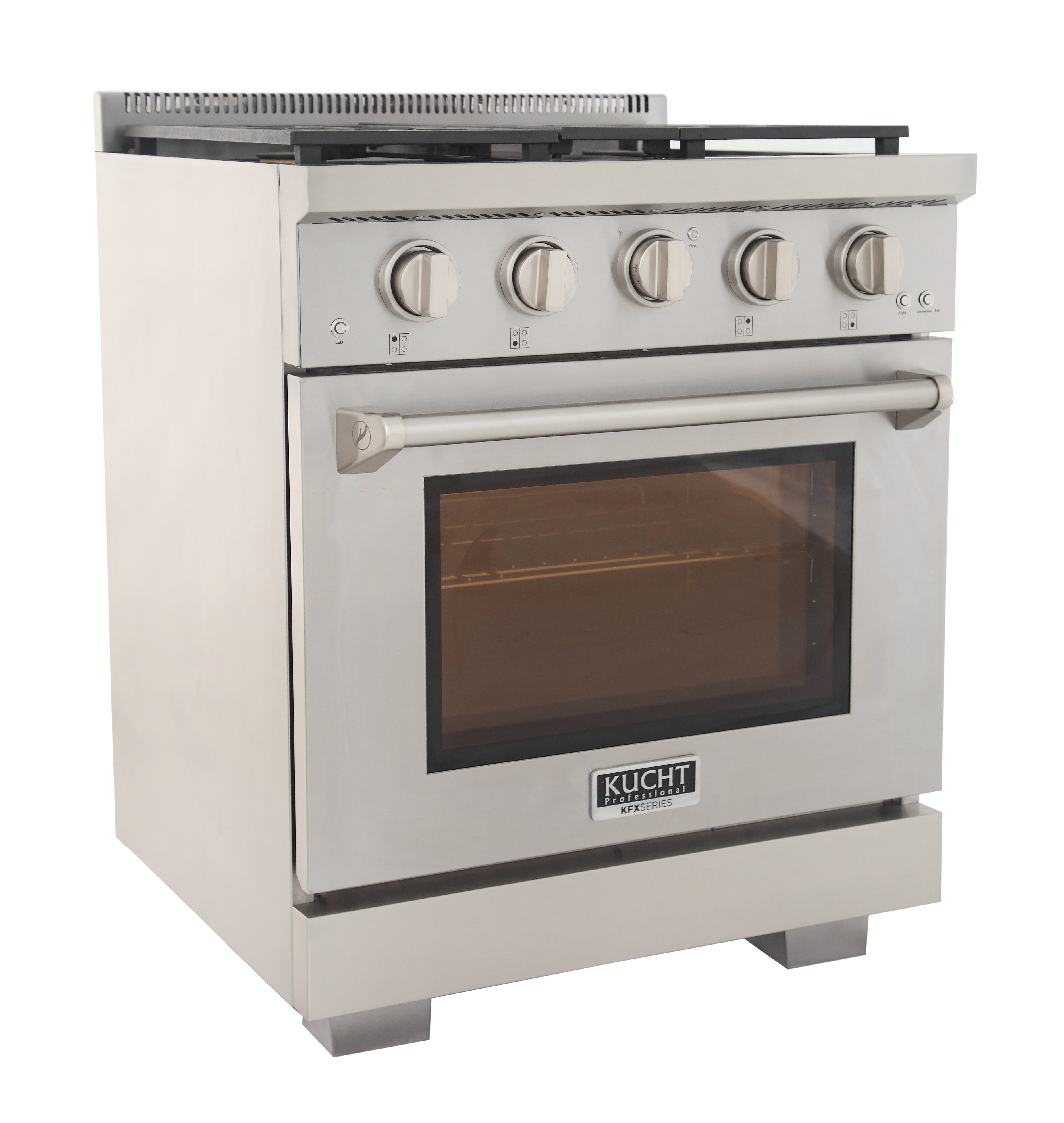 Elevate your kitchen with the Kucht Professional 30" Natural Gas Range (KFX-X Series) — featuring German-engineered Rocket Power Burners and revolutionary TrueSimmer technology with knob indicator lights for ultra-low, precise heat control. Perfect for simmering stocks, sauces, or melting chocolate without scorching.
