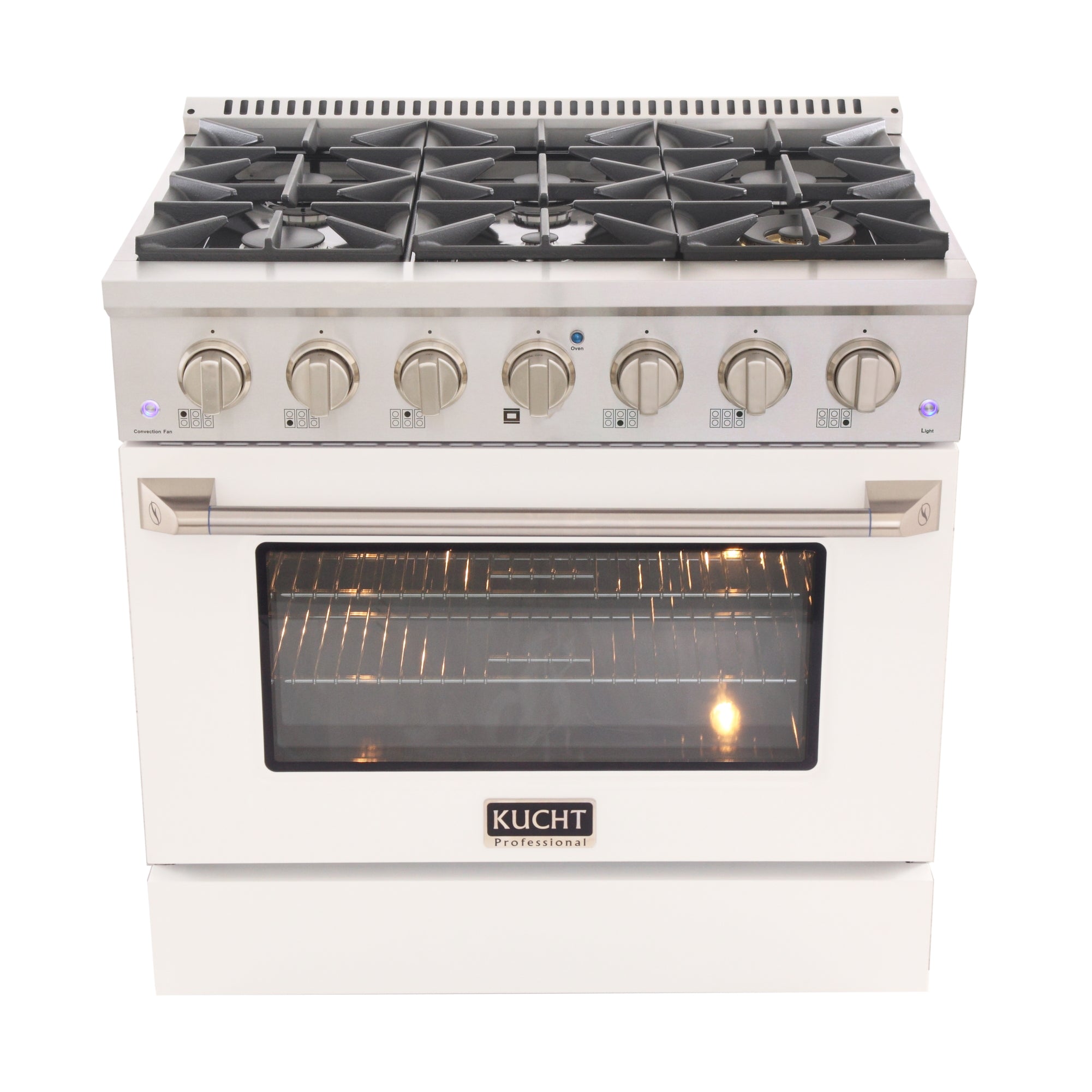 Bring a refined touch of luxury to your kitchen with the Kucht Professional 36" Gas Range in White, designed for Liquid Propane (LP) use. This model from Kuchtβs Color Series blends outstanding performance with timeless elegance β ideal for homeowners who want to make a bold yet graceful design statement.